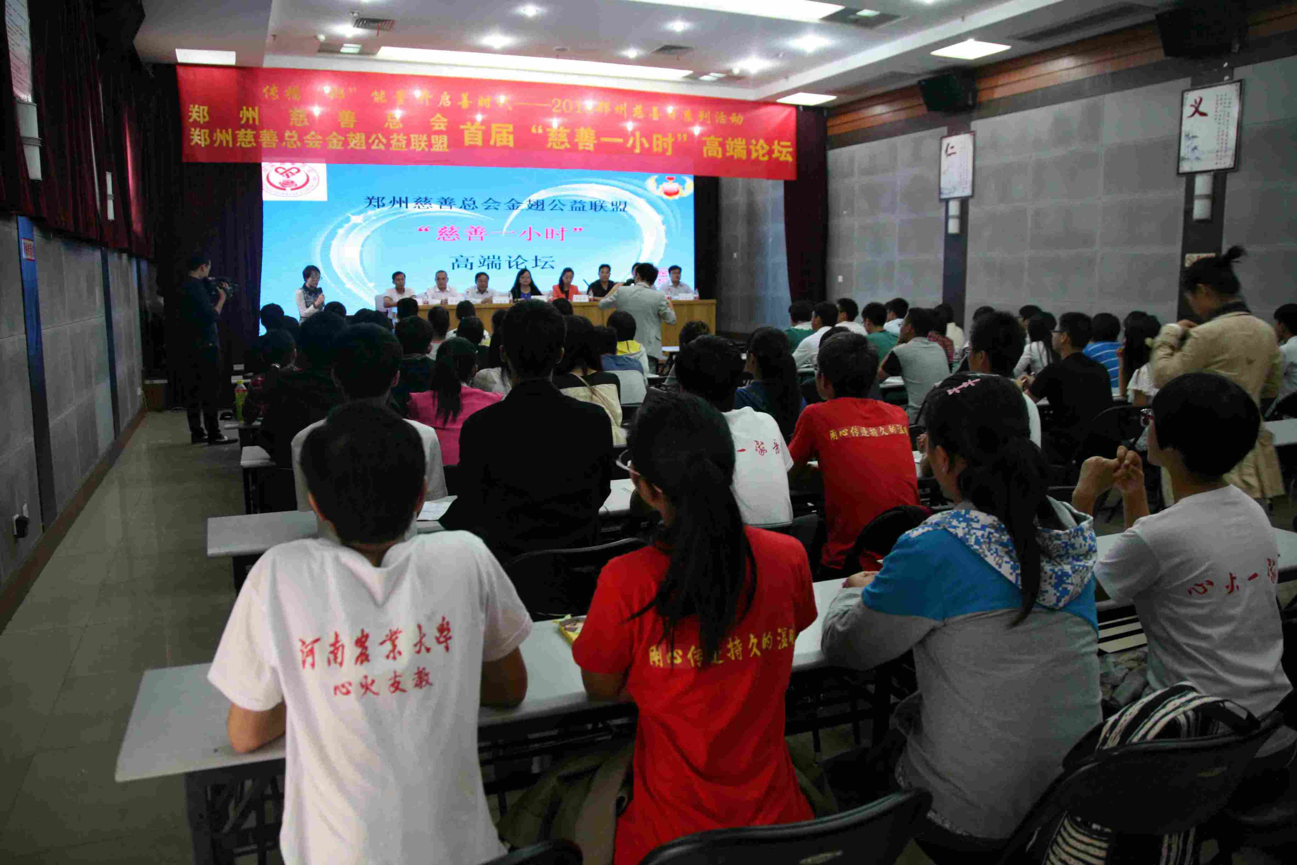 凝聚慈善力量,碰撞智慧火花。为践行我会发起的“慈善一小时”活动,9月13日下午,我会联合金翅公益联盟共同举办的2014郑州慈善大讲堂之“慈善与我,我与慈善”论坛在青少宫拉开帷幕。郑州慈善总会金翅公益大使、2014郑州慈善总会“传递温暖 呵护夕阳”大学生养老护理员项目中的优秀学生代表,省内各高校志愿者团队负责人代表等参与了论坛。